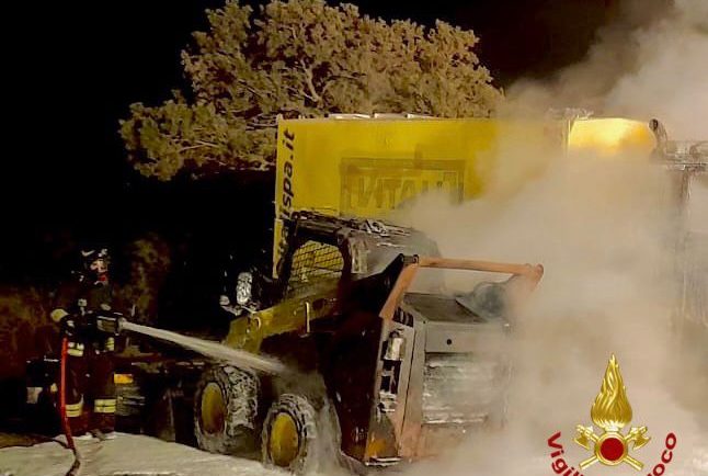 Attentato incendiario nella notte in un cantiere al km 42 SS729 (Olbia-Sassari), dove poco prima della mezzanotte sono andati distrutti una mini pala, un furgone e un semirimorchio con motrice.