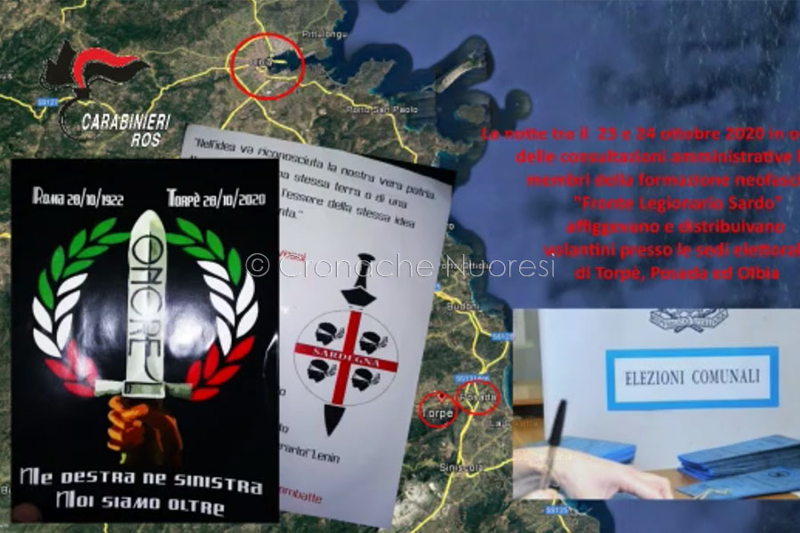 L’inchiesta era scattata il 25 maggio 2019, quando un gruppo neofascista, attivo in particolare nel Nuorese e nel nord Sardegna sotto la sigla Fronte Legionario Sardo, aveva messo a segno numerosi attentati intimidatori (compiuti anche con armi ed esplosivi) a firma di un sedicente Movimento Politico Reazionario (MPR), anche ai danni del sindaco di Torpè e diversi altri amministratori della Baronia, con l’invio di minacce di morte e proiettili calibro 7.65, soprattutto in occasione delle elezioni europee, con la chiara indicazione:”Non andate a votare“, e minacce al “governo e al parlamento”, in caso di mancata accettazione delle istanze espresse nel volantino stesso, di intraprendere “la lotta armata” attraverso “attentati alle sedi istituzionali di tutta Italia” e diffondendo “dati ed informazioni secretate dallo Stato” (al volantino veniva infatti allegata ulteriore eterogenea documentazione recuperata nel c.d. dark web).