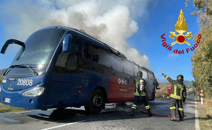 Poteva avere conseguenze ben più serie l’incendio che ha interessato un pullman di linea ARST mentre percorreva la Provinciale 56 in direzione Lotzorai – Talana.