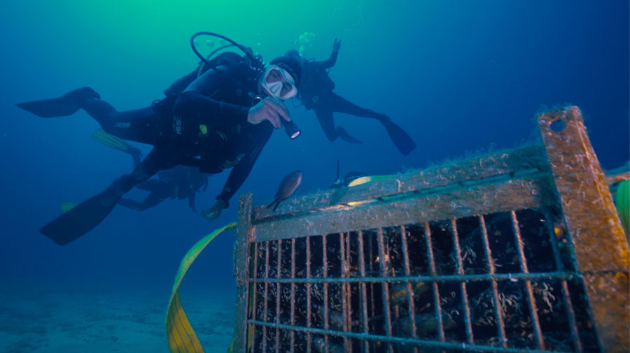 Una speciale selezione di bottiglie di Akènta viene lasciata affinare tra i 30 e i 40 metri di profondità per un periodo dai 6 ai 12 mesi all’interno della Cantina Subacquea: qui il vino evolve in maniera unica, grazie a delle condizioni ambientali eccezionali date da elementi come pressione, temperatura costante, umidità, assenza di luce e ossigeno. Quando ritorna in superficie è pronto a raccontare il suo viaggio dentro ogni calice, mentre ogni bottiglia diventa un pezzo unico, decorato dal mare.