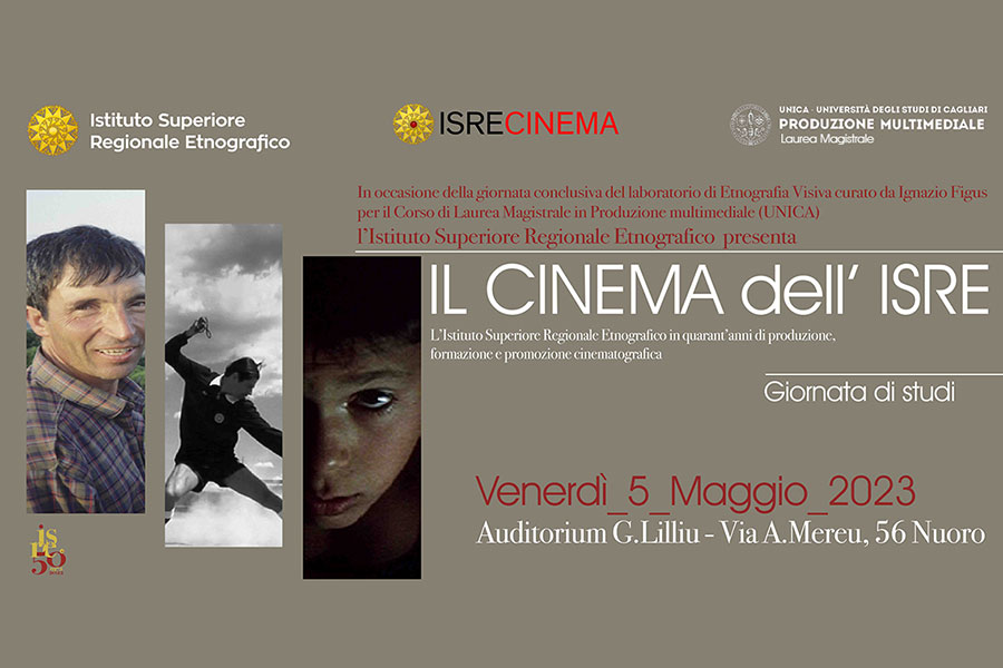 Nell’ambito delle iniziative dedicate alle celebrazioni per il cinquantenario dell’ISRE, in occasione della giornata conclusiva del Laboratorio di Etnografia Visiva curato da Ignazio Figus, responsabile del Settore Produzione Audiovisuale dell’ISRE, per il Corso di Laurea Magistrale in produzione Multimediale dell’Università di Cagliari, l’Istituto Superiore Regionale Etnografico organizza per venerdì 5 maggio una giornata di studi avente per tema Il Cinema dell’ISRE – L’Istituto Superiore Regionale Etnografico in quarant’anni di produzione, formazione e promozione cinematografica.