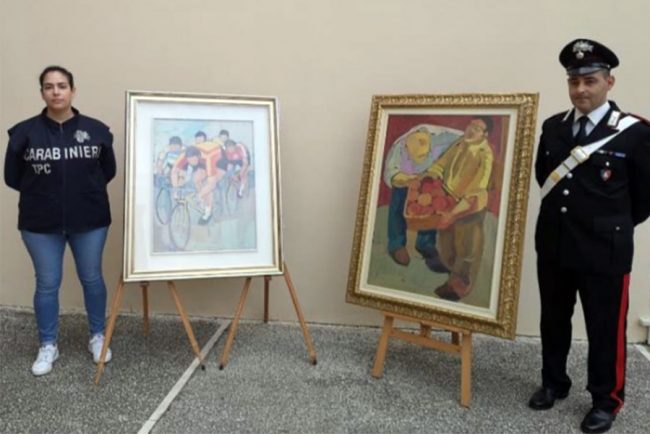 Sono stati poi recuperati due dipinti a olio su tela dell’artista Tore Canu, oggetto di furto. Le indagini, coordinate dalla Procura di Sassari, hanno permesso di risalire alle opere a seguito degli accertamenti svolti su di un sito e-commerce, quando un privato cittadino aveva pubblicato un annuncio per proporne la vendita.