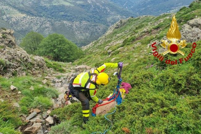 L’animale di proprietà di un allevatore di Arzana, nella caduta ha riportato alcune fratture. Dopo essere stata sedata dal veterinario del paese, l’animale è stato imbragato e trasportata in luogo sicuro con l’ausilio dell’elicottero dei Vigili del Fuoco proveniente dalla base di Alghero Fertilità.