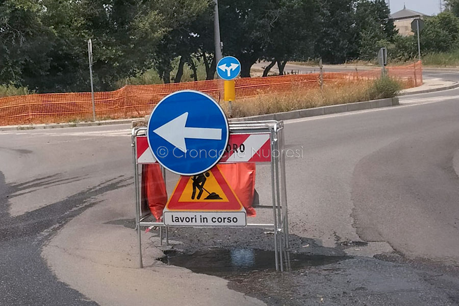 NUORO – Da almeno una decina di giorni una enorme perdita d’acqua scorre indisturbata in piena rotonda lungo la trafficatissima via Badu ‘e Carros.