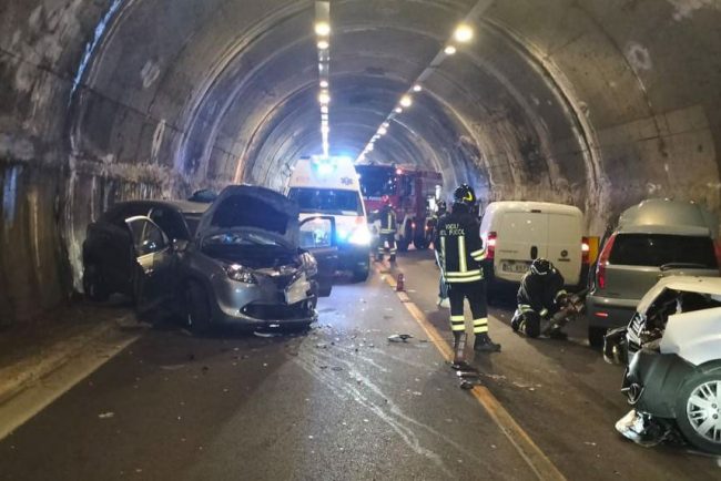 NUORO – Incidente questa sera a pochi chilometri dalla città. Un frontale avvenuto al chilometro 51, all’interno della galleria di Pratosardo, sulla 131 DCN in direzione Siniscola, ha provocato un tamponamento a catena che ha visto coinvolte almeno cinque autovetture.