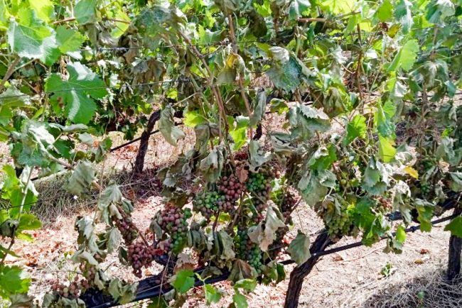 Da una prima stima Coldiretti su un rilevamento effettuato in queste ore sul territorio, sono le aree di Jerzu, Cardedu, Loceri, Tertenia, Gairo e Osini a preoccupare maggiormente ma è tutta la vendemmia 2023 in Ogliastra a rischiare di essere pesantemente compromessa con, solo al momento, il 50% di produzione fortemente danneggiata dal grande caldo. Sono tanti i produttori che stano cercando di fare il possibile per salvare quello che resta, anche utilizzando sistemi di irrigazione, ma in tanti casi l’uva è già bruciata e la pianta gravata anche da una caduta esponenziale delle foglie. In questo quadro molti Comuni stanno già deliberando lo stato di calamità naturale ma la situazione è ancora in divenire. Sempre da prime stime Coldiretti si segnalano gravi perdite, in particolare nell’area di Barisardo, su angurie, meloni e pomodori, ma è già in estrema sofferenza anche il settore dell’allevamento con le ondate di calore che stanno mettendo a dura prova i capi di bestiame, in particolare gli allevamenti avicoli. Proprio su questi ultimi nelle ultime ore sono centinaia le galline morte nell’allevamento Liccardo Contu di Jerzu.«Siamo fortemente preoccupati non solo per gli ingenti danni che rischiano di compromettere nel breve periodo i fatturati di tantissime aziende del territorio, ma anche perché la perdita di grossi quantitativi di produzione, specie nel sistema vitivinicolo, creeranno problemi sulla presenza dei nostri prodotti nei mercati nel medio termine – sottolinea Leonardo Salis, presidente Coldiretti Nuoro Ogliastra – in particolare il vitivinicolo, che in questo territorio assume un ruolo fondamentale, sta avendo i maggiori problemi con il rischio che la vendemmia 2023 possa essere letteralmente compromessa».
