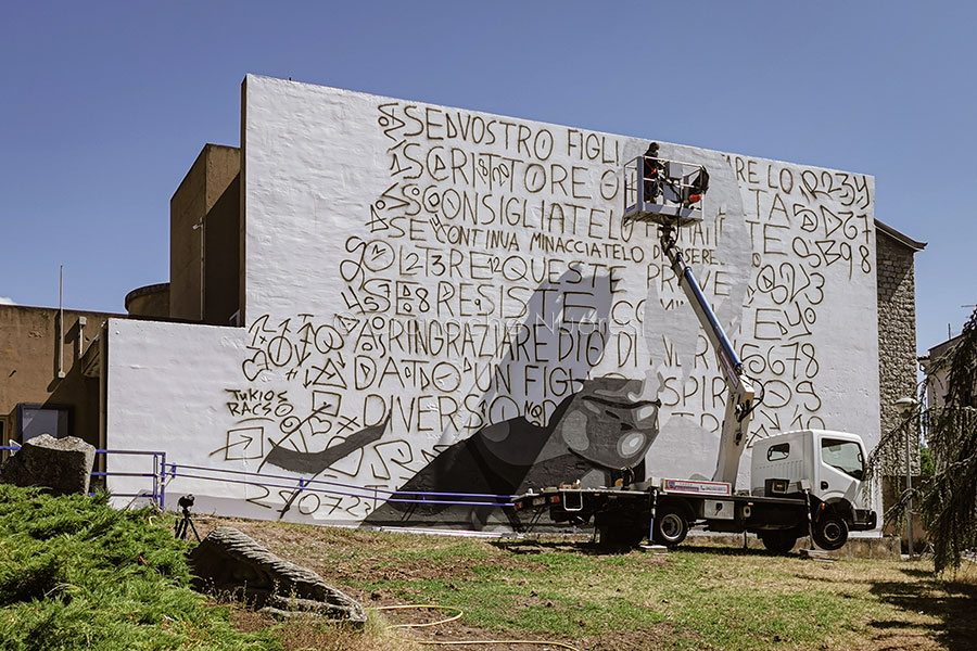 Il progetto, promosso sin dal 2022 dal Comitato promotore per le celebrazioni dei 150° dalla nascita di Grazia Deledda e finanziato dal Ministero della Cultura e dalla Fondazione di Sardegna, consentirà a Nuoro di entrare a far parte del circuito internazionale di città in cui l’artista delle periferie, come ama definirsi lui, che ha lasciato il segno raffigurando, nell’ambito del progetto “Human Tribe“, personaggi che hanno avuto il coraggio di ribellarsi e combattere per i propri diritti e per quelli degli altri, quali, ad esempio, Che Guevara e Nelson Mandela, Cassius Clay, Antonio Gramsci, Maradona, Ilaria Cucchi, Julian Assange, Fedor Dostoevskij (dopo la vicenda che coinvolse Paolo Nori), fino alla recente bambina con i colori dell’Ucraina nell’iride, realizzata a Mariupol, tutti segnati in viso da due strisce rosse per guancia, segni che alludono ai rituali tribali scoperti dall’artista durante un viaggio in Africa.