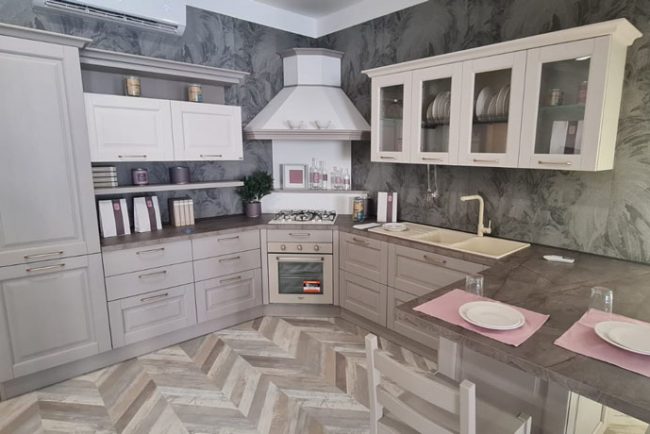 Spazio anche a Jey Feel la cucina moderna dal carattere deciso che si apre con naturalezza al living definendo la sua anima urban chic ma anche Tablet e Contempo. Per gli amanti di un genere più classico ma sempre dinamico e giovane in esposizione il modello Oprah. Stile contemporaneo e funzionalità ultra moderna in perfetto equilibrio. Il tocco di classe sta nella sua forma, molto femminile e accurata. Elegante contrasto del legno massello bianco antico decapé con il legno massello tinto noce.