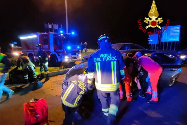 Notte d’incidenti nel Nuorese in entrambi è intervenuta la squadra dei Vigili del Fuoco di Siniscola. Il primo scontro è avvenuto intorno alle 23 al bivio di Agrustos: un Mercedes Gle Coupé ha impattato contro un’Alfa 156. Ad avere la peggio due giovani napoletani incastrati tra le lamiere dell’Alfa Romeo che sono stati estratti con divaricatore e cesoie dai VVF.