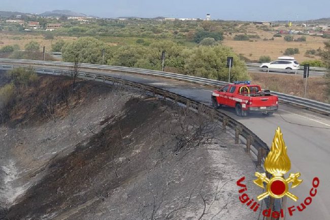 Sono circa 1000 metri quadri invece quelli andati in cenere dall’altro incendio avvenuto contestualmente a Berchiddeddu all’inizio del paese sulla strada principale. In questo caso per contrastare le fiamme è stato chiuso  lo svincolo stradale per Olbia sulla circonvallazione della 131 dcn nei pressi di Sa Corroncedda.