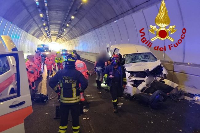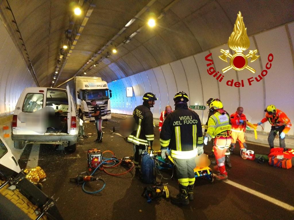 È di tre feriti, di cui uno gravissimo, il bilancio dello scontro frontale avvenuto nel primo pomeriggio tra un camion e un furgone all’interno della galleria di San Teodoro, lungo la Statale 131 DCN.