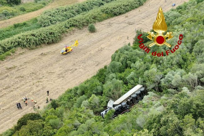 Sul posto è intervenuto l’elisoccorso dell’AREUS e un’ambulanza del 118. Nel frattempo i Vigili del fuoco hanno raggiunto l’autista, , rimasto incastrato nell’abitacolo del mezzo pesante, e lo hanno estratto consegnandolo ai sanitari.