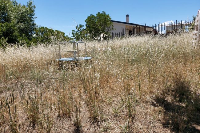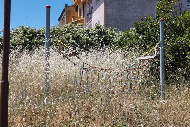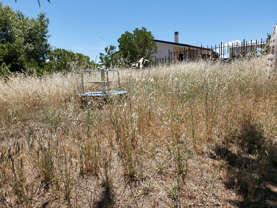 NUORO – Erba secca e alta con i tanti pericoli che ne conseguono, come ad esempio, le zecche. I bambini della Materna di via Funtana Buddia nonostante abbiano a disposizione un bellissimo cortile con giochi non possono accedervi per giocare.