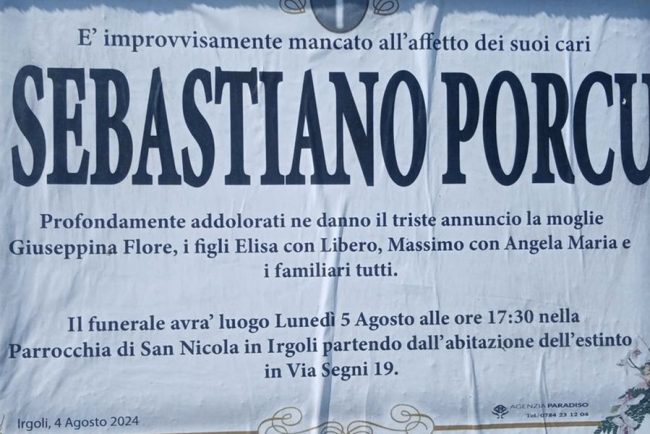 I FUNERALI – La notizia della prematura scomparsa del 61enne ha scosso profondamente la comunità, la funzione religiosa in memoria del defunto sarà officiata da don Angelo Cosseddu alle 17.30 nella chiesa di San Nicola.