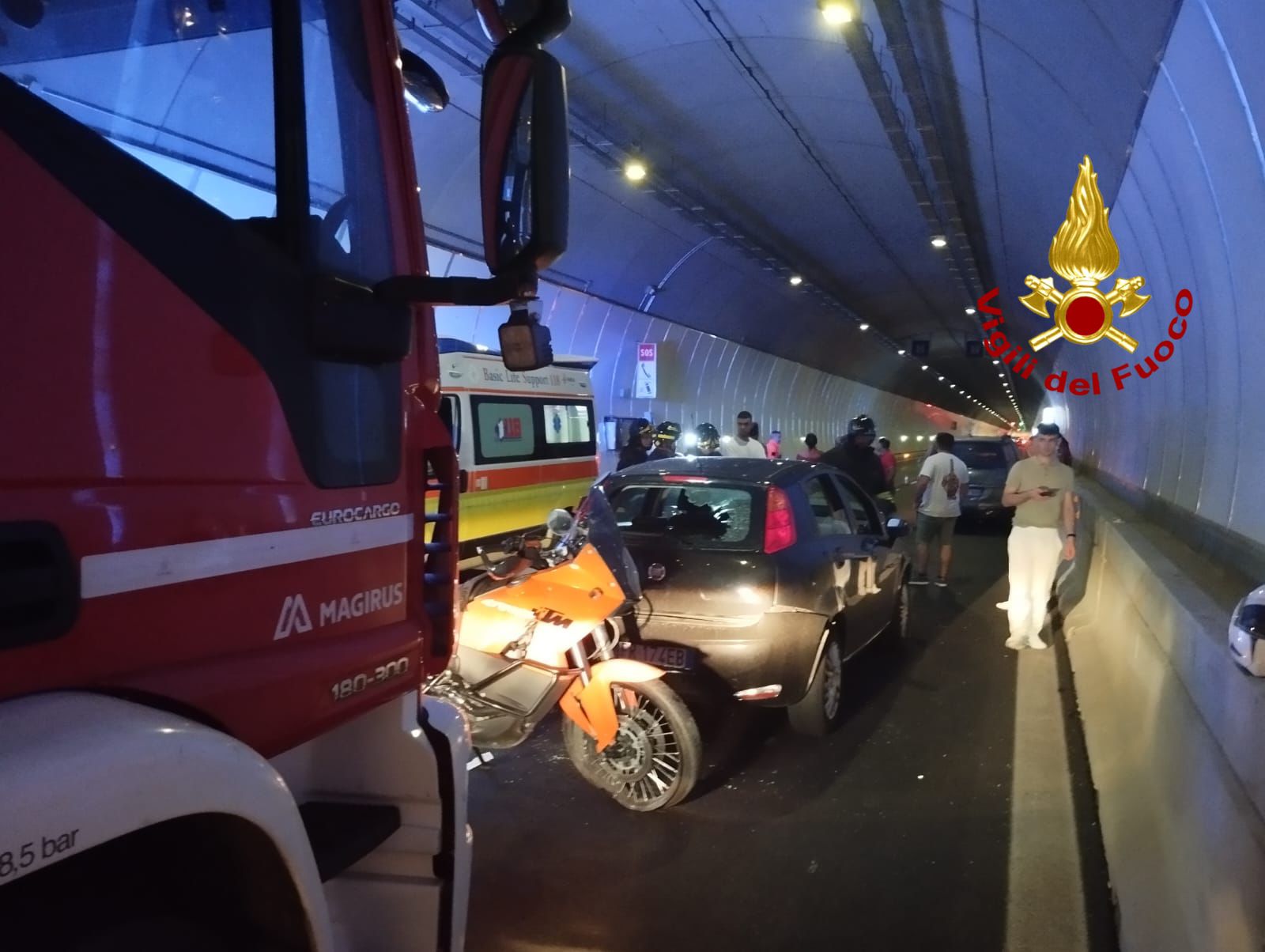 Sul posto i Vigili del Fuoco hanno messo in sicurezza l’area dell’incidente con conseguente rallentamento del traffico per via della chiusura della galleria. La gestione della viabilità è stata affidata alle Forze dell’ordine.