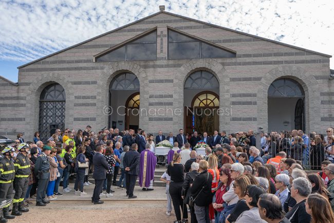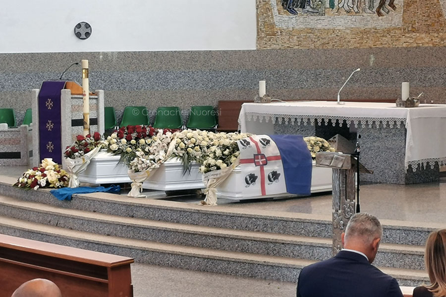 Le tre bare bianche sono state posizionate già da questa mattina per dare la possibilità ai parenti di Giusi di partecipare anche ai funerali di Paolo Sanna. La celebrazione è accompagnata dal canto del Coro di Nuoro, di cui fa parte il padre di Giusi.