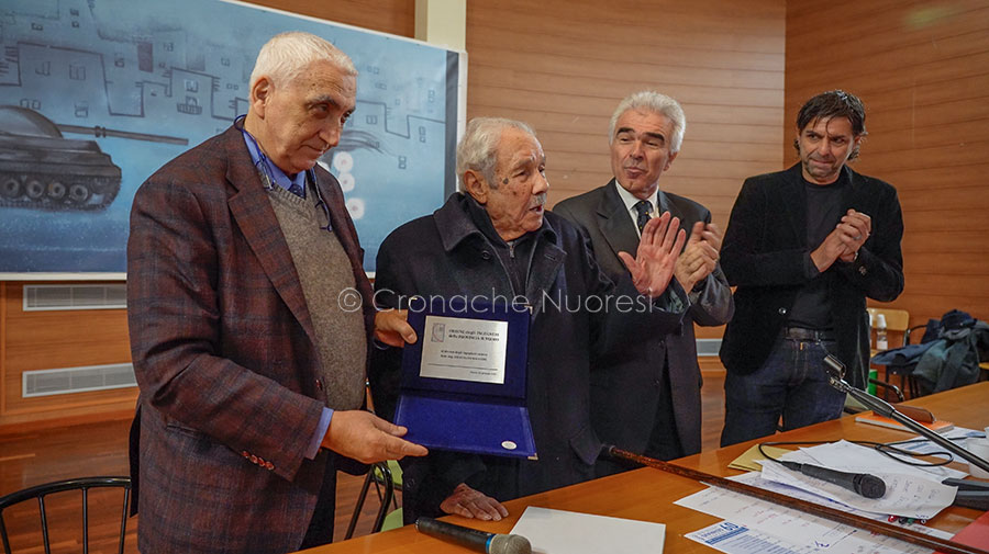 Ieri, 9 gennaio 2024, l’Ordine degli ingegneri della provincia di Nuoro ha voluto rendere omaggio al suo decano con una targa consegnatagli dal presidente dell’Ordine nuorese Giuseppe Ibba e di quello nazionale Angelo Perrini, nel corso di una cerimonia tenutasi nell’auditorium dell’Istituto Tecnico Geometri Francesco Ciusa in viale Costituzione, nell’ambito di un convegno intitolato dedicato alla gestione informativo digitale della costruzione e alla certificazione delle competenze professionali.