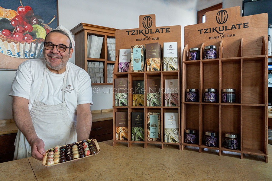 LA FABBRICA DI CIOCCOLATO – Dal 2022 l’omologo dell’eccentrico fondatore della famosa fabbrica di cioccolato Wonka, esiste anche in Sardegna. Nel cuore di Nuoro, infatti, una fabbrica di cioccolato artigianale da tempo conquista con le sue creazioni uniche, nate dall’incontro tra la passione per il cioccolato e i sapori autentici della Sardegna, i palati più raffinati. Un progetto ambizioso, quello di Antonio Pintori, storico pasticcere e cioccolataio con oltre 30 anni di esperienza conosciuto per la rinomata e collaudata pasticceria l’OASI DELIZIOSA, che quest’anno compie 40 anni, e di suo figlio Francesco. Insieme, hanno saputo fondere la tradizione artigiana con una visione moderna e raffinata della pasticceria per dar vita al marchio Tzikulate, un nome che evoca immediatamente la schietta parlata nuorese e che, fin dalla sua comparsa sui social media, ha incuriosito sia gli estimatori della “limba” sia i golosi amanti del cioccolato.