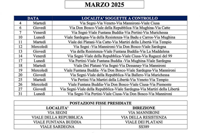 Il Comune di Nuoro ha reso noto il calendario delle postazioni autovelox per il mese di marzo 2025. L’iniziativa, come sempre, mira a garantire una maggiore sicurezza sulle strade e a sensibilizzare gli automobilisti sull’importanza del rispetto dei limiti di velocità. Con l’occasione, la Polizia Locale ricorda che il limite di velocità in tutte le strade del centro abitato interessate dal controllo è di