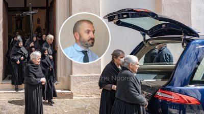 Il funerale di Mesina e, nel riquadro, Sebastian Cocco (foto S.Novellu)