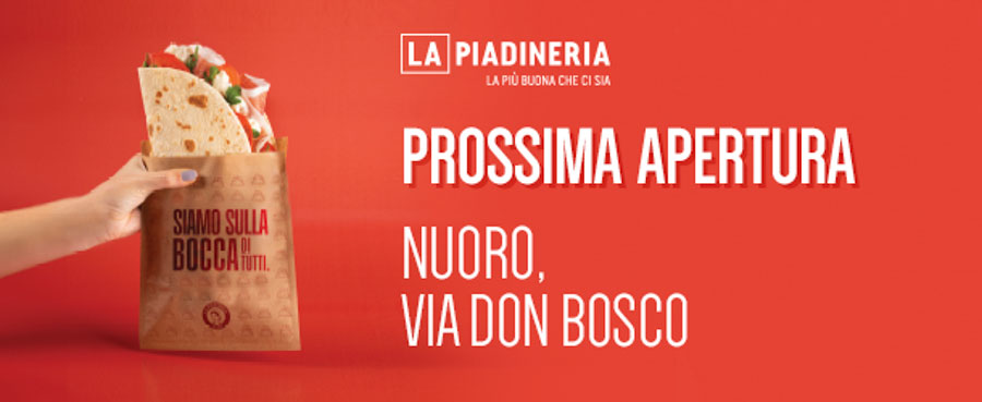 È ufficiale: La Piadineria, la più grande catena italiana della ristorazione veloce, apre il suo primo ristorante a Nuoro. L’inaugurazione, attesissima, è prevista per il 27 maggio in Via Don Bosco, portando in città un format che ha già conquistato milioni di italiani dal 1994 a oggi.