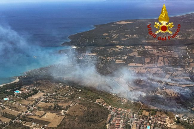 OROSEI, 28 luglio 2025 – Dopo il devastante rogo che ha flagellato ieri le aree marine di Villasimius (APPROFONDISCI), riducendo in cenere un centinaio di ettari di macchia mediterranea e bruciato decine di automobili, questa mattina, complice il forte vento, la mano degli incendiari ha preso di mira il territorio di Orosei, nella zona di Su Crastu, a Sos Alinos, dove, a scopo precauzionale, sono state evacuate numerose abitazioni e un residence, mentre nella spiaggia di Marzellinu, a Cala Liberotto, è dovuta intervenire la Protezione Civile per l’evacuazione di vari edifici.