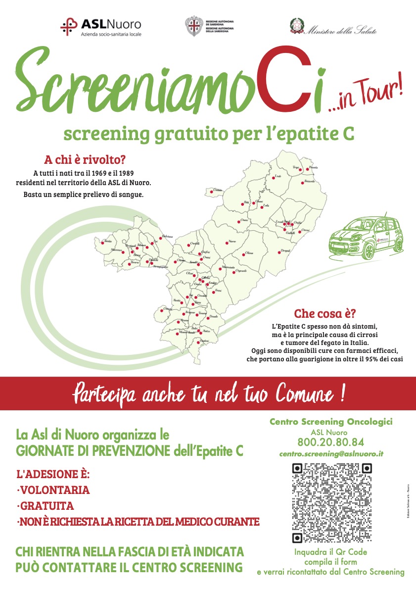Per i nati tra il 1969 e il 1989 è possibile contattare il Centro Screening al numero verde 800.20.80.84, all’indirizzo di posta elettronica centro.screening@aslnuoro.it, o compilando il form che si ottiene inquadrando il QRcode presente sulla locandina. L’adesione agli screening è volontaria e gratuita senza necessità di ricetta del medico curante.