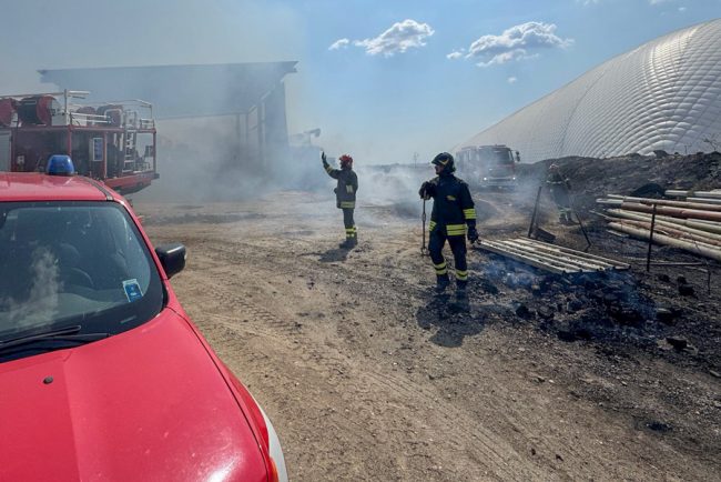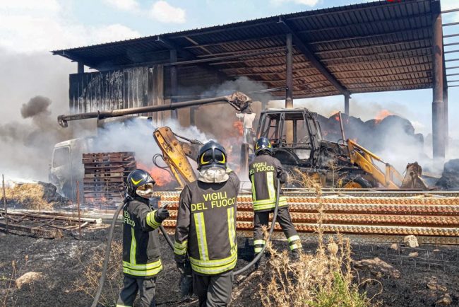 OTTANA – Le fiamme, derivanti da un incendio di vegetazione, intorno alle 14,00 hanno raggiunto un’azienda agricola in località “Preda e Solu”, nella zona industriale di Ottana, distruggendo diverse rotoballe, una terna e un camion.