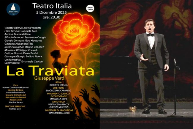 ROMA – C’è molta attesa per la stagione operistica romana, che vedrà in scena domani, venerdì 5 dicembre alle ore 20,30, al teatro Italia di Roma, il celebre capolavoro verdiano La Traviata, nell’ambito del “Belcanto Italia Festival“. L’opera vanta un cast internazionale mentre il ruolo del protagonista maschile, Alfredo Germont, è affidato al tenore nuorese Francesco Congiu (APPROFONDISCI). Per il tenore nato a Nuoro nel 1989, questa esibizione costituisce un ulteriore prova della sua collaudata esperienza operistica che lo ha già visto calcare prestigiosi palcoscenici nazionali e internazionali.