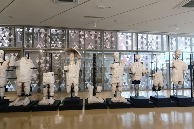 LA MOSTRA DELLA SOPRINTENDENZA – Altre 5 statue, due Giganti e tre modellini di nuraghe, recentemente restaurate dalla Soprintendenza per la prima volta a Cabras, nella sala restauro ricavata nel Museo Marongiu, si riuniranno alle altre nel 2027 e saranno presto esposte separatamente in una piccola mostra dalla stessa Soprintendenza.